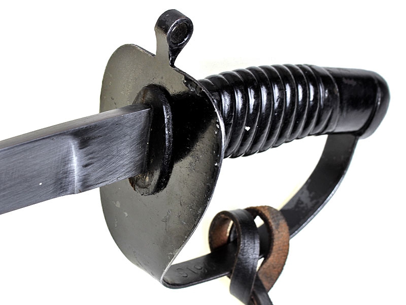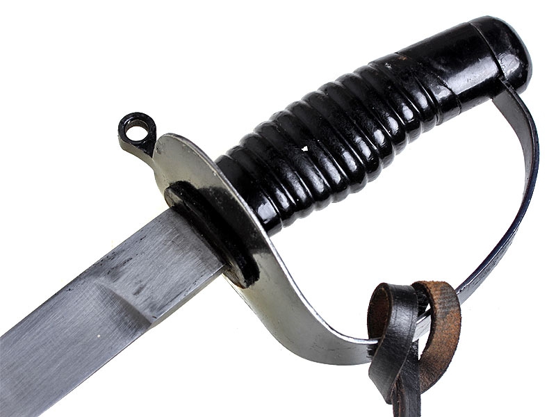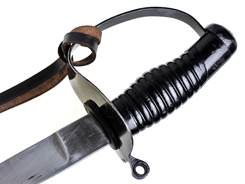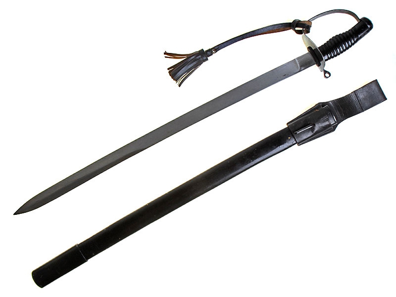 Палаш морской курсантский образца 1940 года в отличной сохранности. Клинок без долов, у основания присутствует клеймо Ижевского машиностроительного завода с годом выпуска - 1946. Рукоять деревянная, с поперечными желобками. Весь металлический прибор рукояти изготовлен из стали и покрыт воронением. Ножны деревянные, покрыты черным лаком. Железный прибор состоит из вороненых устья и наконечника. Сохранился темляк.