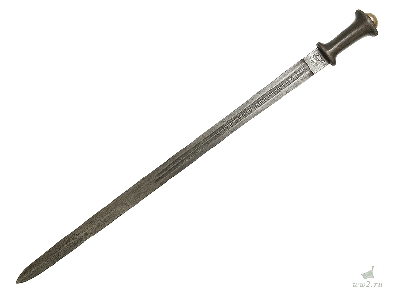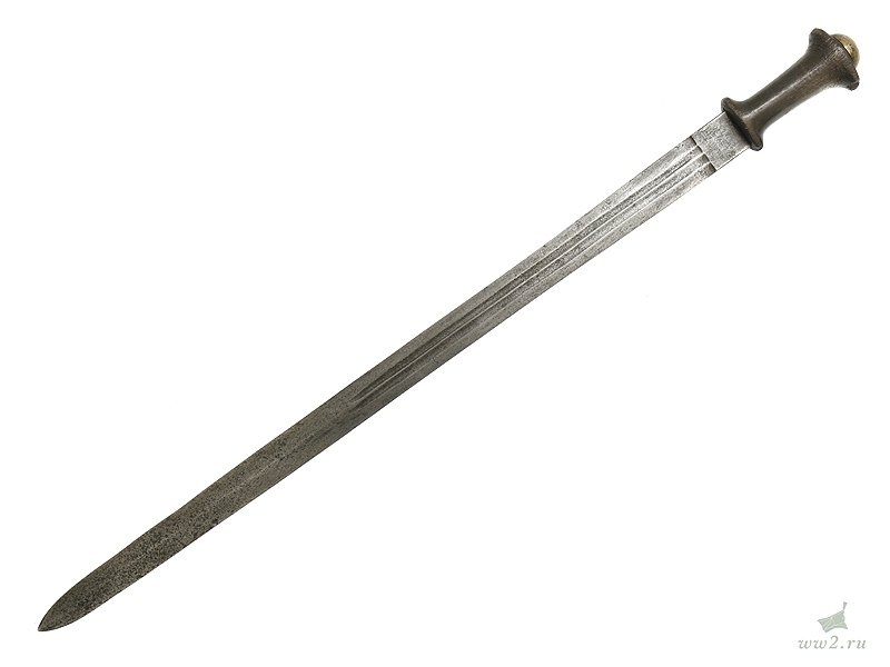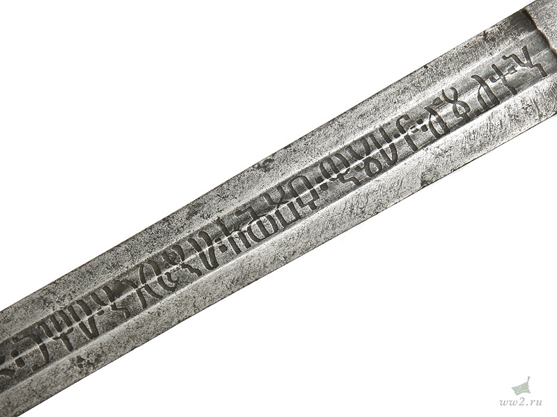 Палаш общей длиной 93 см, изготовленный в Толедо (Испания) для Эфиопии в 1860-х - 1880-х годах. С травленой надписью на клинке, рукоять из рога носорога. Очень хорошее состояние.