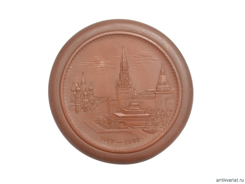 Памятная глиняная плакетка изготовленная в отличном качестве на Мейсонском фарфоровом заводе в Германии к 30 летию Октябрьской революции.