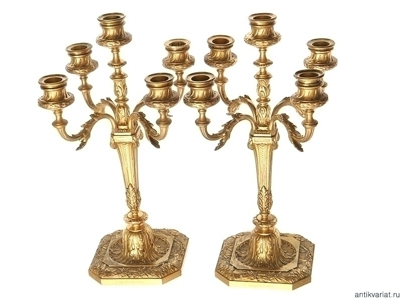 Пара канделябров в стиле "ампир" первой половины XIX века. На основаниях канделябров имеются подписи автора "F.Barbedienne". Бронза, красивое яркое золочение. Отличное состояние.