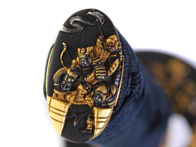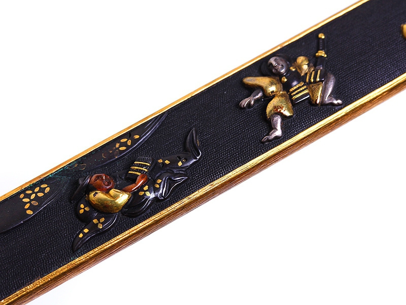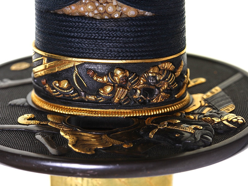 Оба клинка в прекрасном состоянии, профессионально отполированы. Рукояти и оправы обоих мечей декорированы в едином стиле. Цуба и элементы оправы, судя по воинскому убранству изображенных на них самураев, украшены изображениями участников одного из крупных сражений между Тайра и Минамото, которое состоялось в 1184 году. В комплект входят сира-сайя для хранения клинка и лакированная подставка - катана-какэ.