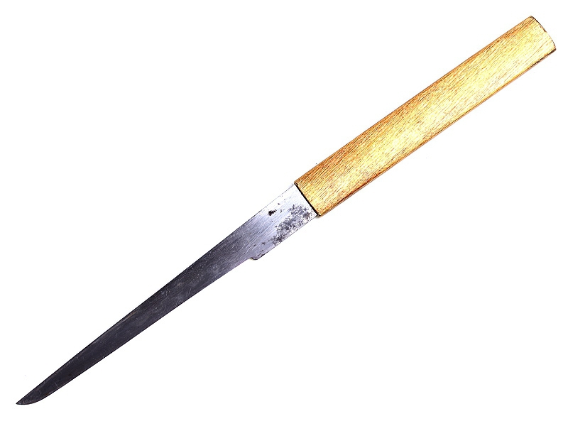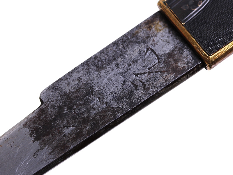 Вакидзаси с подписью на хвостовике клинка: "Это сделал Ясуцугу, находясь в землях Этидзэн" (оружейник Ясуцугу, позднее поколение, предположительно Ясуцугу V). Датируется первой половиной XVIII века.