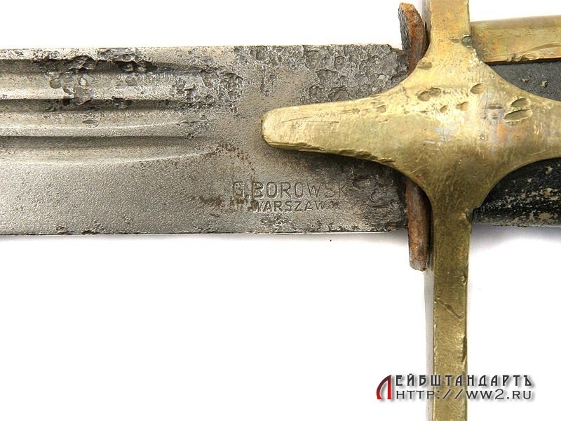 Парадная сабля офицера кавалерии выпуска 1920-х - начала 1930-х годов. Клинок сильно изогнутый, с тремя узкими долами. У основания клинка имеется клеймо фирмы-изготовителя - "G.Borowski w Warszawe". Рукоять деревянная, обтянутая кожей, с восстановленной обмоткой; гарда классического типа для польских сабель. Прибор гарды изготовлен из латуни. Ножны отсутствуют.