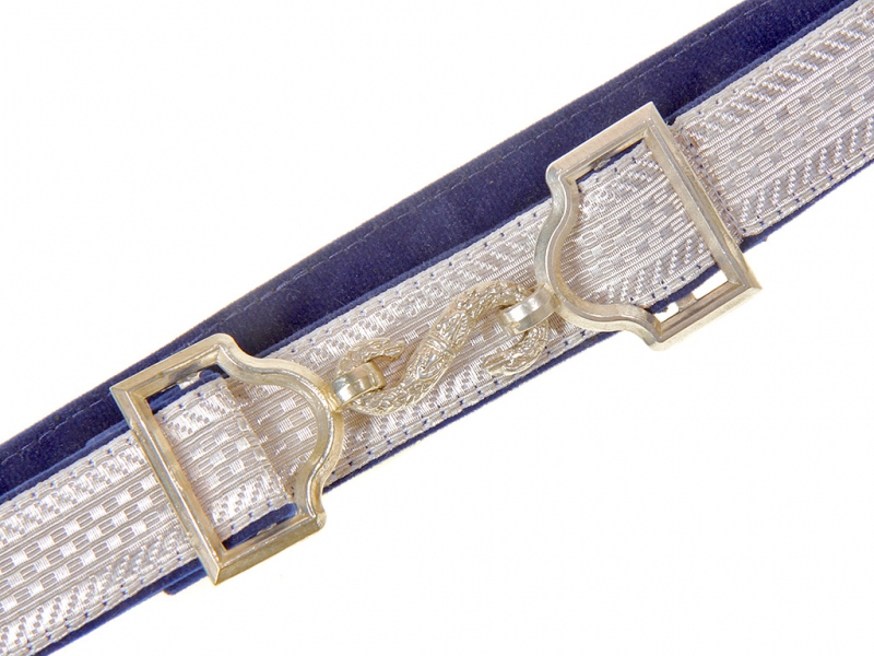 Поясной ремень изготавливался из кожи и обшивался снаружи галуном, присвоенным подразделению (портупейным галуном по цвету металлического прибора - серебряным или золотым). По бокам галуна при этом оставался узкий кожаный борт, окрашенный под цвет подбоя пасиков. Ширина поясного ремня составляет 9/16 вершка, а ширина галуна на нем 1/2 вершка. Длина ремня определялась обхватом талии, но была такой, чтоб пряжка ремня для его укорачивания приходилась с правой стороны сбоку, несколько ближе к передней стороне. Металлический прибор делался из меди, вызолоченной или высеребренной (по цвету, присвоенной части), и в его состав входили: