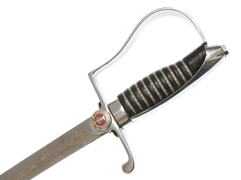Парадная сабля офицера армии ГДР, сформированной в 1950 году. Клинок никелированный, без клейм. На перекрестии гарды - накладное изображение герба ГДР. Отличное состояние.