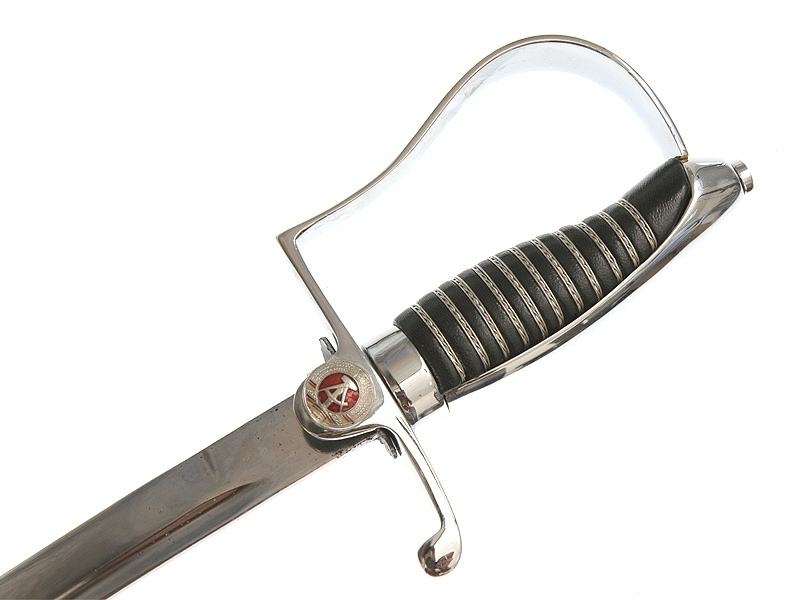 Парадная сабля офицера армии ГДР, сформированной в 1950 году. Клинок никелированный, без клейм. На перекрестии гарды - накладное изображение герба ГДР. Отличное состояние.