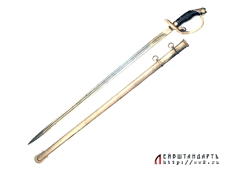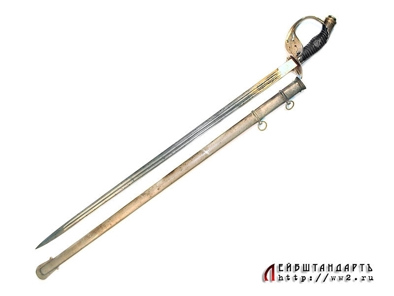 Палаш прусского офицера времен Первой мировой войны в редком заказном исполнении. Прямой клинок из дамасской стали с двумя узкими долами, у основания имеется клеймо "Eisenhauer Damast - Stahl" - "Железоруб, дамасская сталь". Рукоять из прокрашенного рога, по поперечным желобкам обвита проволокой. Сохранилась кожаная петля для пальца. На рукояти имеется накладной вензель кайзера Вильгельма II. Гарда бронзовая, вызолоченная, украшена рельефным прорезным изображением прусского орла с императорским вензелем на груди. Золочение практически полностью сохранилось на всех металлических деталях монтировки эфеса. Ножны металлические, никелированные. Палаш изготовлен под очень большой рост, длина предмета в ножнах 106 см. Редкий предмет в очень хорошем коллекционном состоянии.