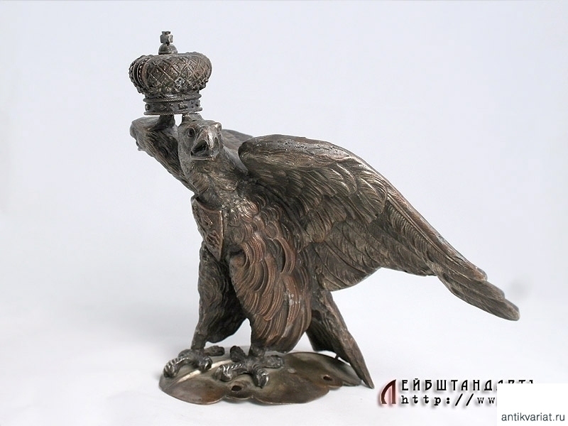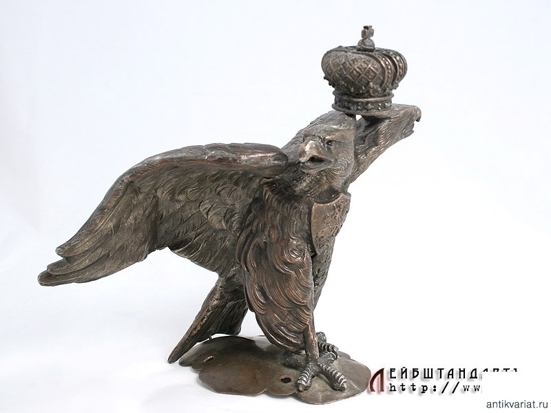 Установленный на шлеме орел многократно ремонтировался и реставрировался - присутствуют многочисленные следы паек. Тем не менее, частично сохранилось оригинальное серебрение. Крепящие его к основе заклепки заменены.