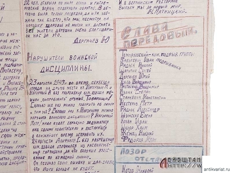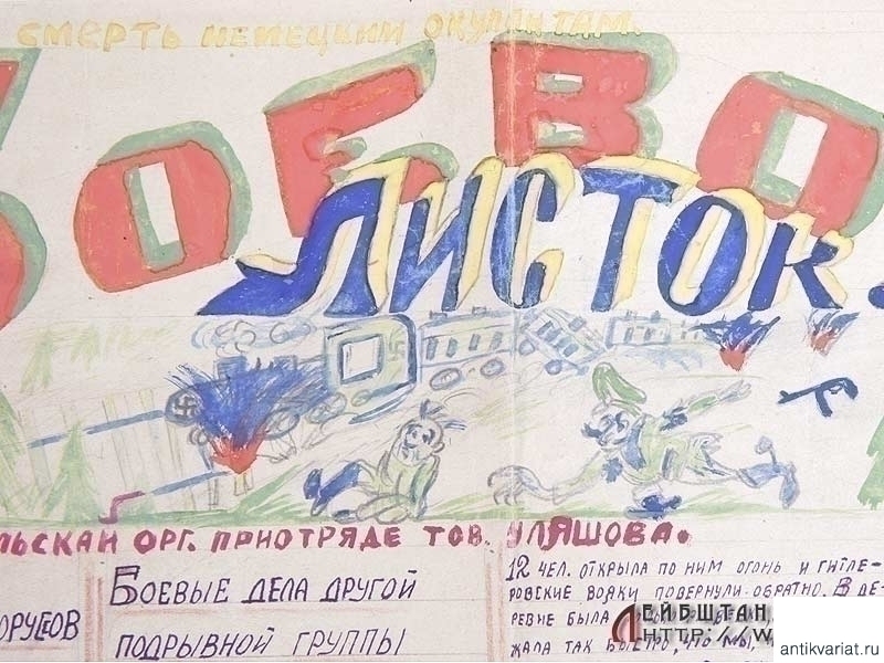 Рукописный партизанский боевой листок - орган комсомольской организации при партизанском отряде тов. Уляшова. Очень хорошее состояние.