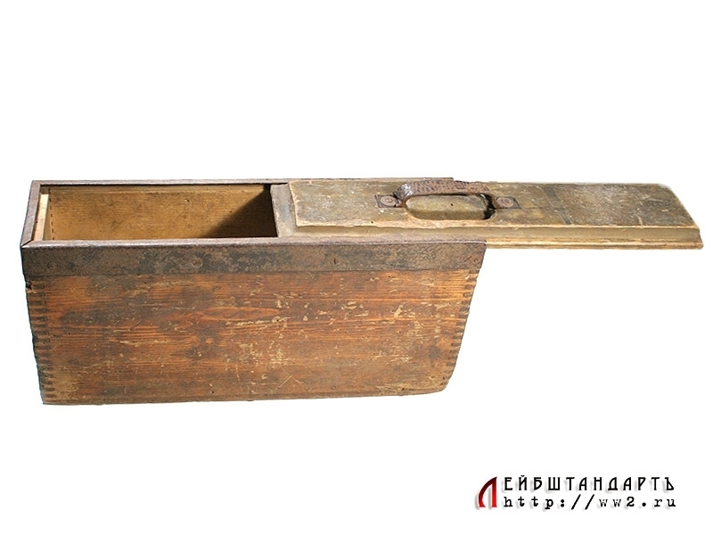Патронный ящик со сдвижной крышкой для патронов к винтовке системы Манлихера. Корпус изготовлен из дерева, на крышке и дне ящика имеется выжженное клеймо в виде винтовочного патрона. Отличный предмет для реконструкции.