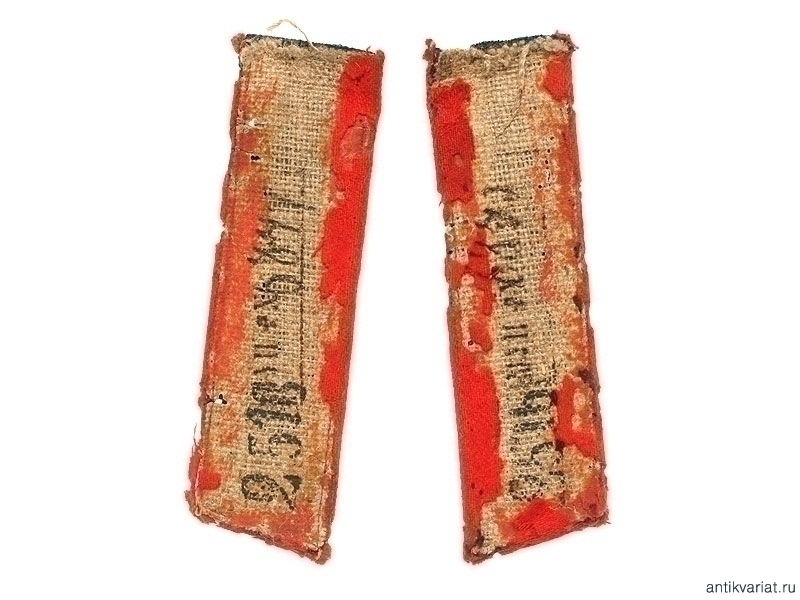 Темно-зеленые суконные петлицы с красным кантом на пальто(шинель) офицера пехотный частей (4-й полк в дивизии). Начало ХХ века.