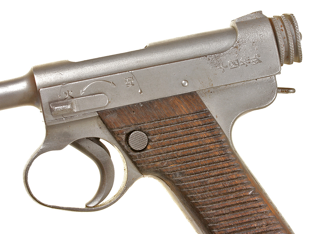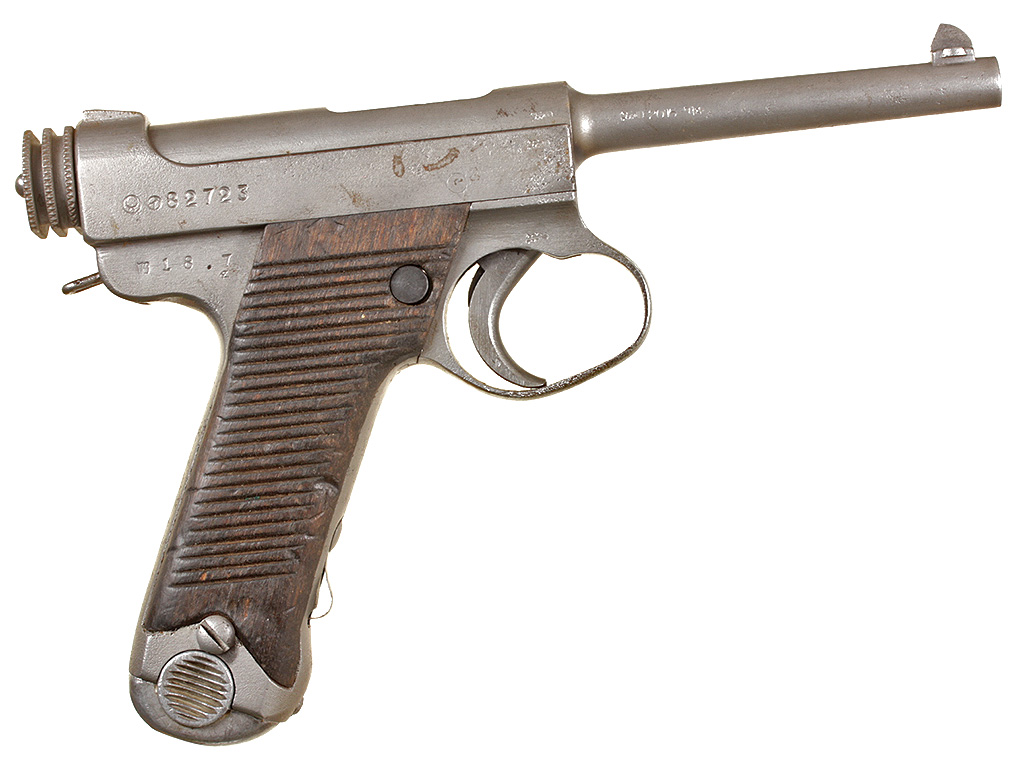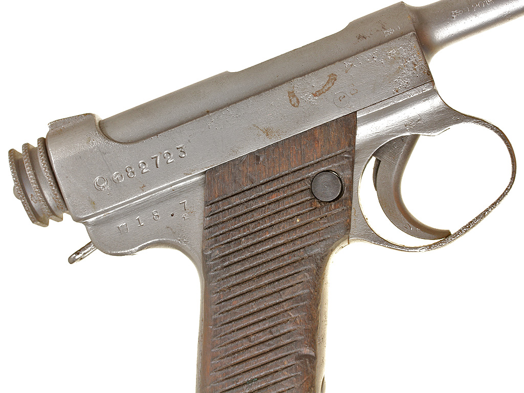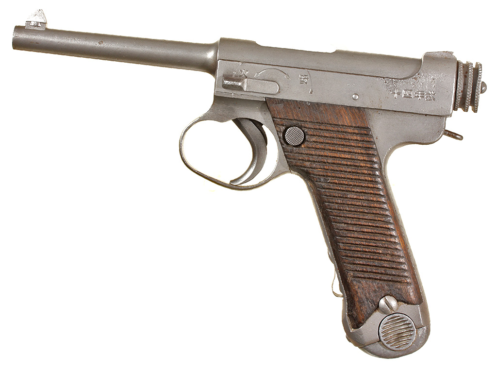 Основной пистолет японских вооруженных сил периода Второй мировой войны - Намбу Тип 14, изготовленный после модернизации 1940 года. Хорошее состояние, воронение потерто.