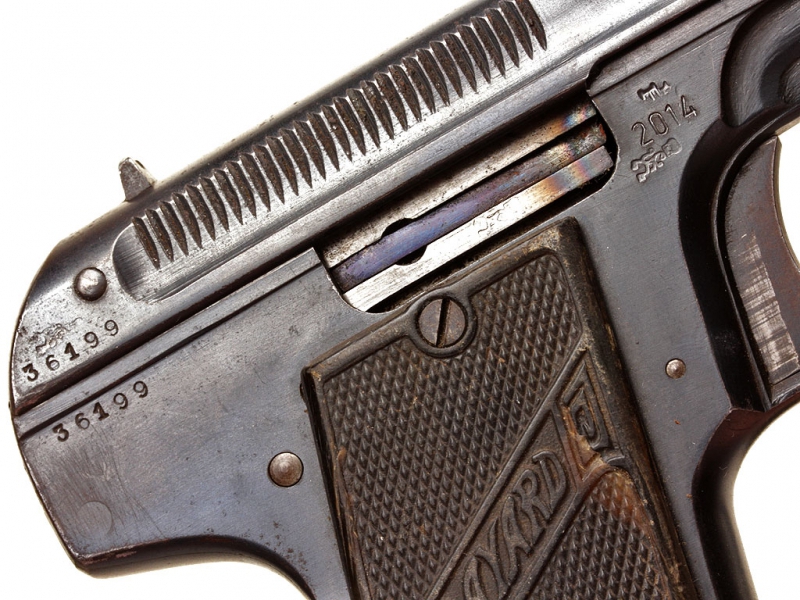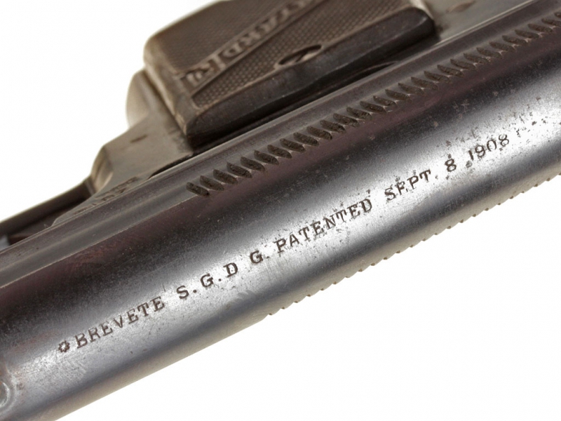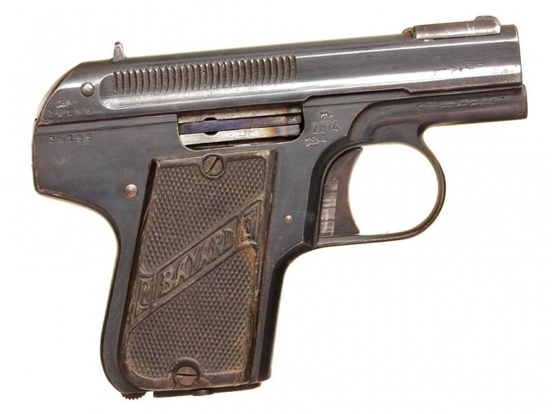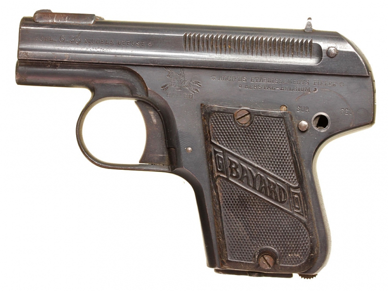 Карманный пистолет "Bayard" образца 1908 года калибром 7,65 мм. Оригинальное воронение, на одном номере. Отсутствует предохранитель.