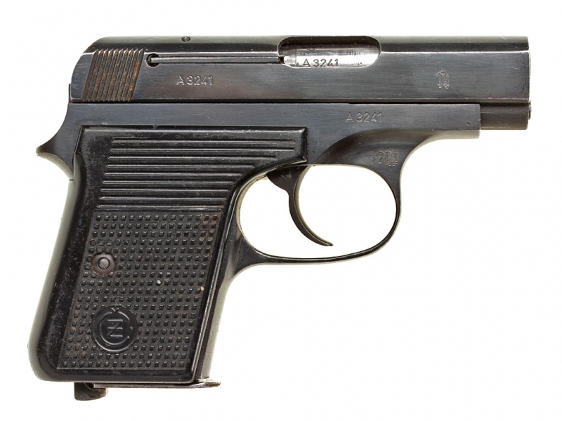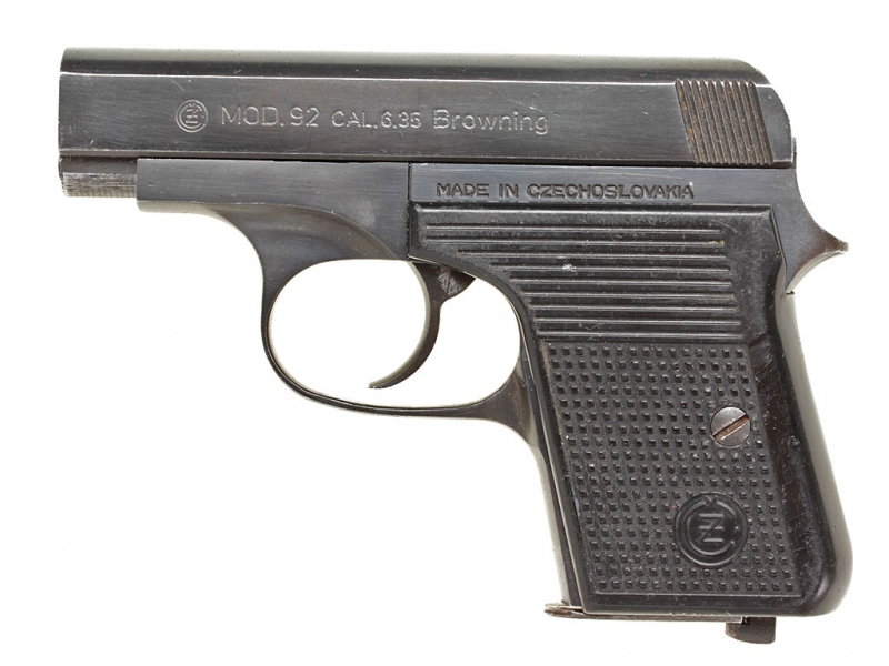 Карманный пистолет CZ-92 раннего выпуска (у более современного варианта этой модели иная форма щечек рукояти). Калибром 6,35 мм, отличное состояние.