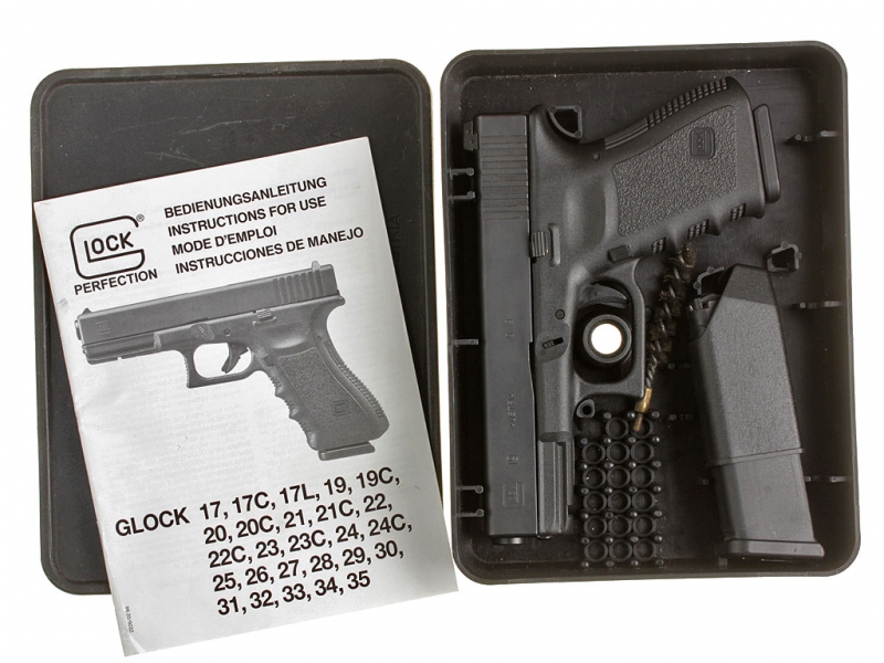 Пистолет Глок19 в очень хорошем состоянии, полностью на одном номере, в оригинальном пластиковом футляре с инструкцией.