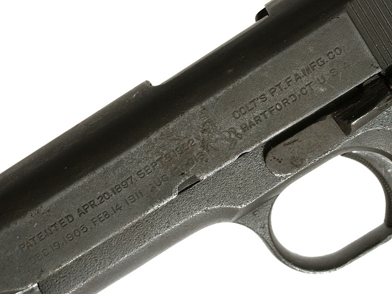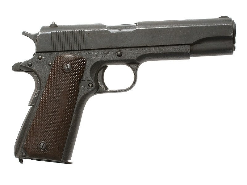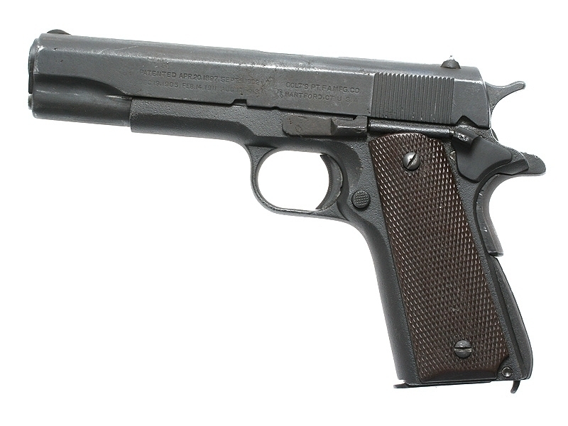 Пистолет Кольт образца 1911 года. Выпуск времен Второй мировой войны, фосфатированный. Хорошее состояние.