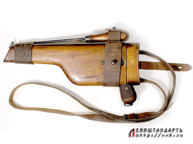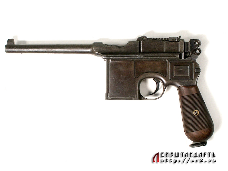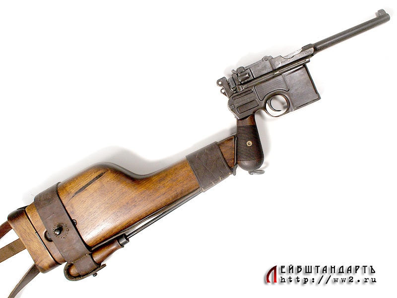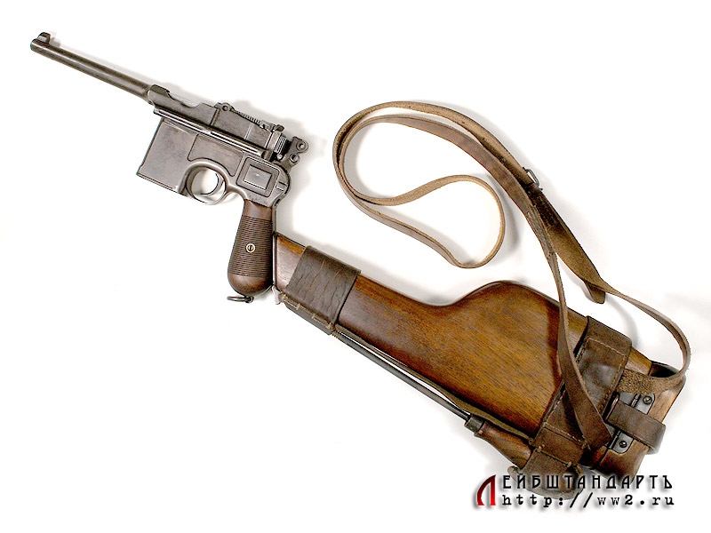 Пистолет "Маузер" образца 1896 года, снабженный деревянной приставной кобурой-прикладом. Пистолет в отличном состоянии, превосходно сохранилось воронение, на корпусе присутствуют клейма завода-изготовителя и клейма технической приемки.