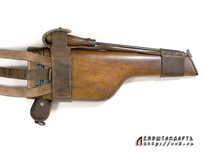 К пистолету прилагается деревянная кобура с кожаным обвесом, снабженным шомполом.