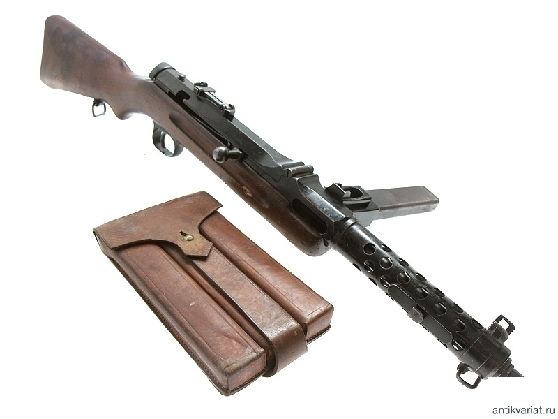 Пистолет-пулемет "Штейр-Солотурн" раннего выпуска в очень хорошем состоянии. В комплект входит кожаный подсумок на три магазина.