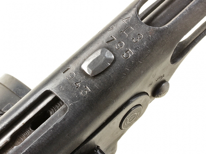 Пистолет-пулемет системы Шпагина, изготовленный в 1943 году. Очень хорошее состояние, почти не потерт, на одном номере.