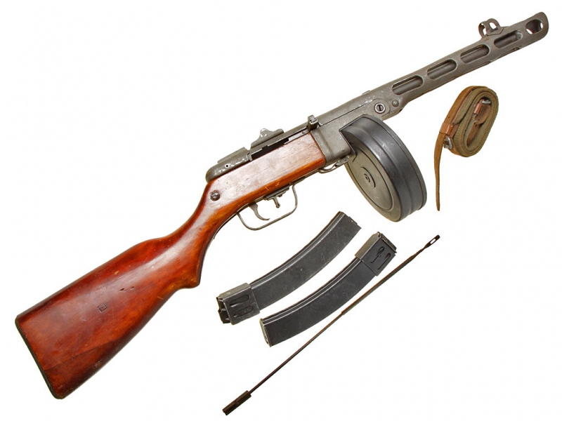 В советской армии были целые батальоны, вооруженные ППШ. Интересно, что во время войны немцы нередко предпочитали ППШ своим МР-40 - благодаря "живучести" оружия и большой емкости магазина.