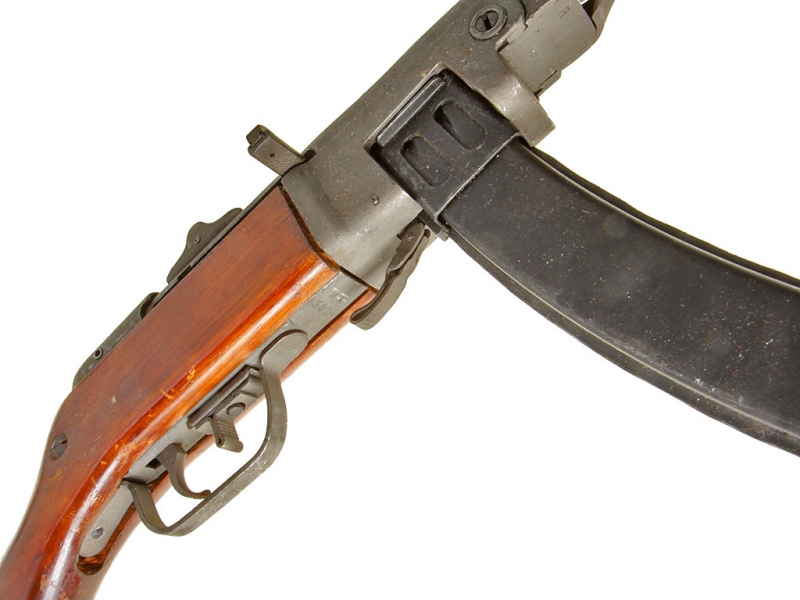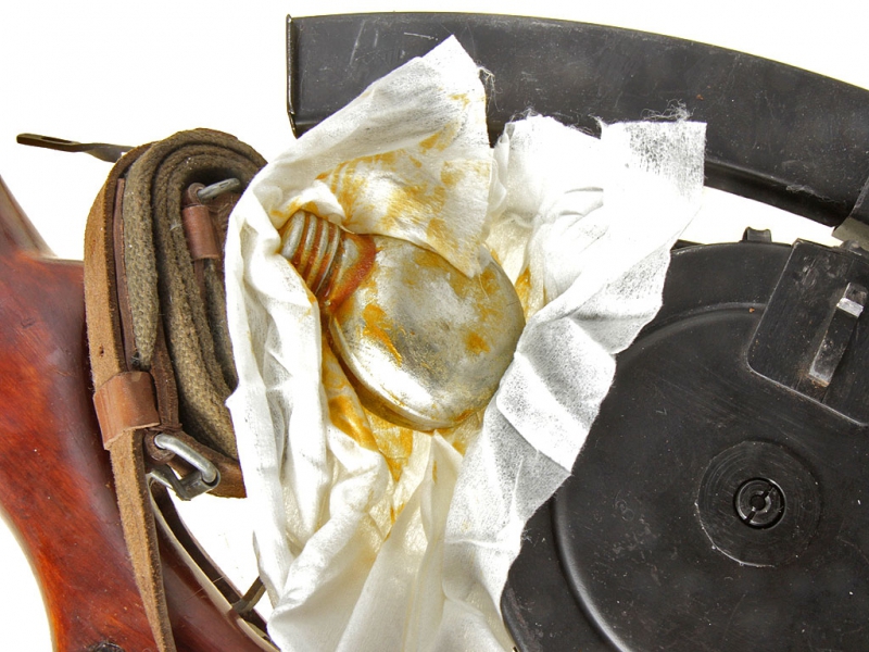 Пистолет-пулемет Шпагина ППШ-41 выпуска 1943 года. Хорошее состояние, на одном номере. Рожковый и дисковый магазины в комплекте, также как и ремень, масленка и шомпол.