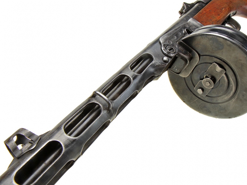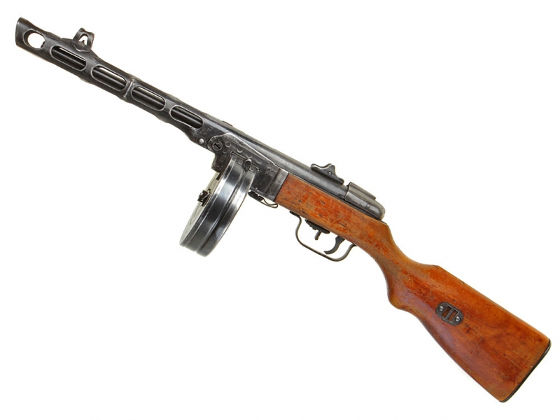 ППШ-41 (Пистолет-Пулемет конструкции Шпагина) был создан в 1941 году для замены дорогостоящего в производстве пистолета-пулемета Дегтярева ППД-40. В этом же году принят на вооружение РККА. ППШ-41 представлял собой простое и дешевое в производстве оружие военного времени, и выпускался в значительных количествах - всего в годы войны было выпущено порядка 5 или 6 миллионов штук ППШ-41. Вскоре после войны ППШ-41 был снят с вооружения Советской Армии, однако он широко поставлялся на экспорт в просоветски настроенные развивающиеся страны, и в Африке его можно было увидеть даже в 1980-е годы.