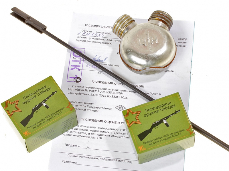 В комплект входит 2 пачки холостых патронов и экспертное заключение.