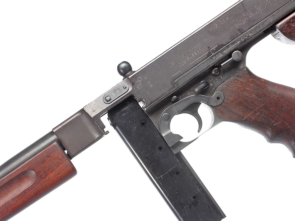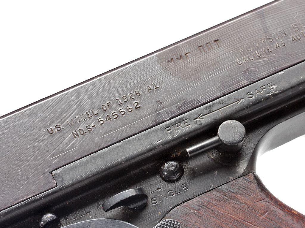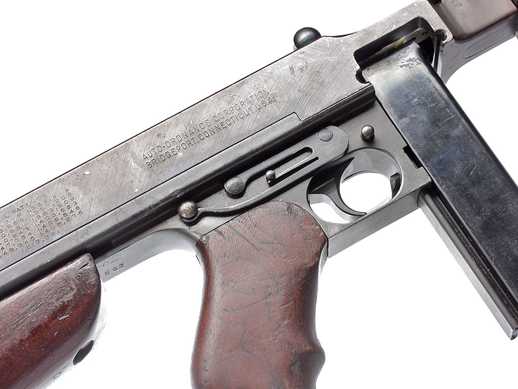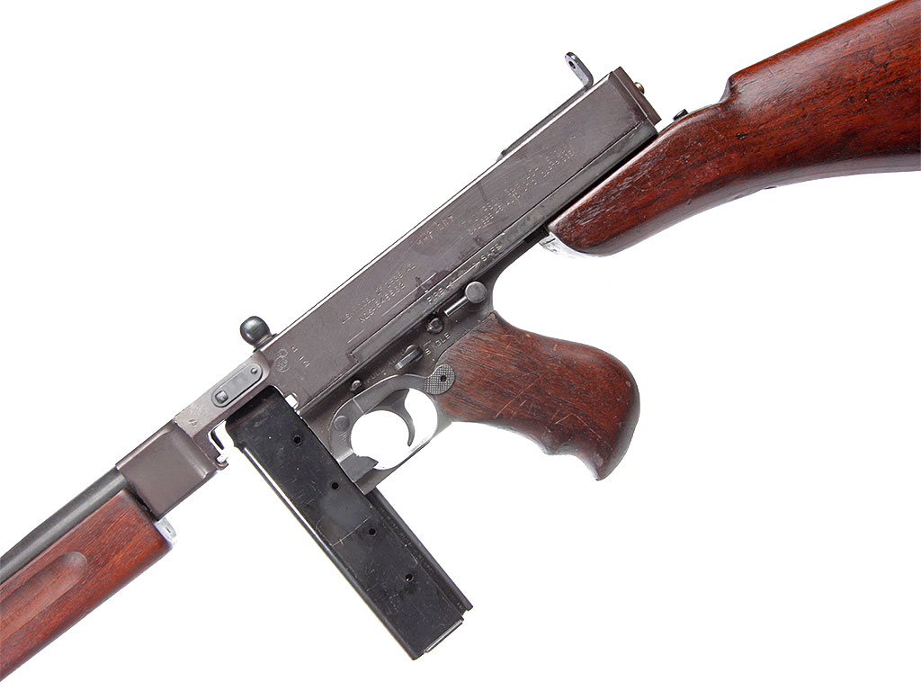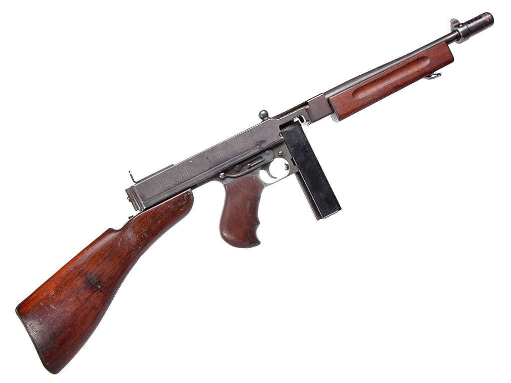 Пистолет-пулемет Томпсона образца 1928 года, модификация "А1" - позднего выпуска с гладким стволом: именно эта модификация в годы войны поставлялась в СССР по ленд-лизу.