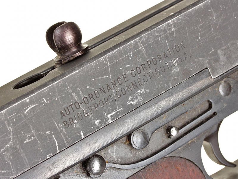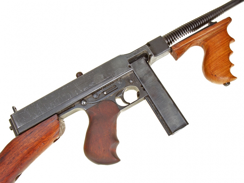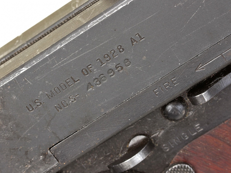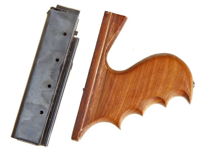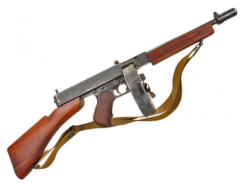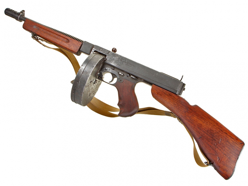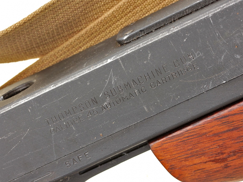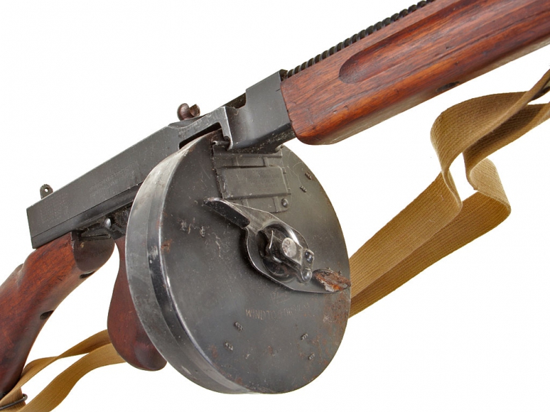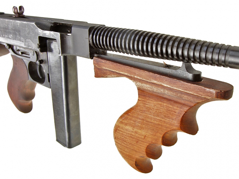 Пистолет-пулемет Томпсон образца 1928 года, модификация "А1" с рифленым стволом и дополнительной рукояткой вместо горизонтального цевья (рукоятка - современного изготовления). Очень хорошее складское состояние. В комплект входит рожковый магазин и брезентовый ремень.