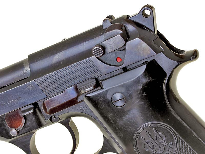Этот пистолет появился в 1977г. и очень схож с моделью 92, но снабжен усовершенствованным предохранителем — флажковый предохранитель перенесен с рамки на затвор-кожух и обеспечивает предотвращение самопроизвольного срыва курка с боевого взвода. Он играет также роль рычага безопасного спуска — в рабочем положении он не допускает удара курка по ударнику, освобождает курок и разъединяет спусковую тягу и шептало.