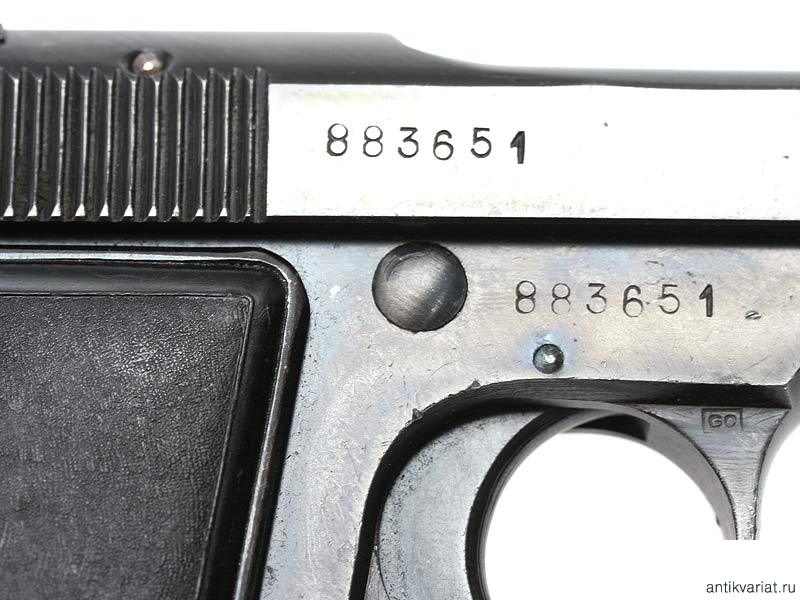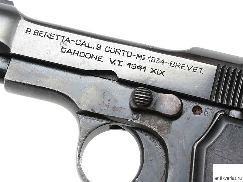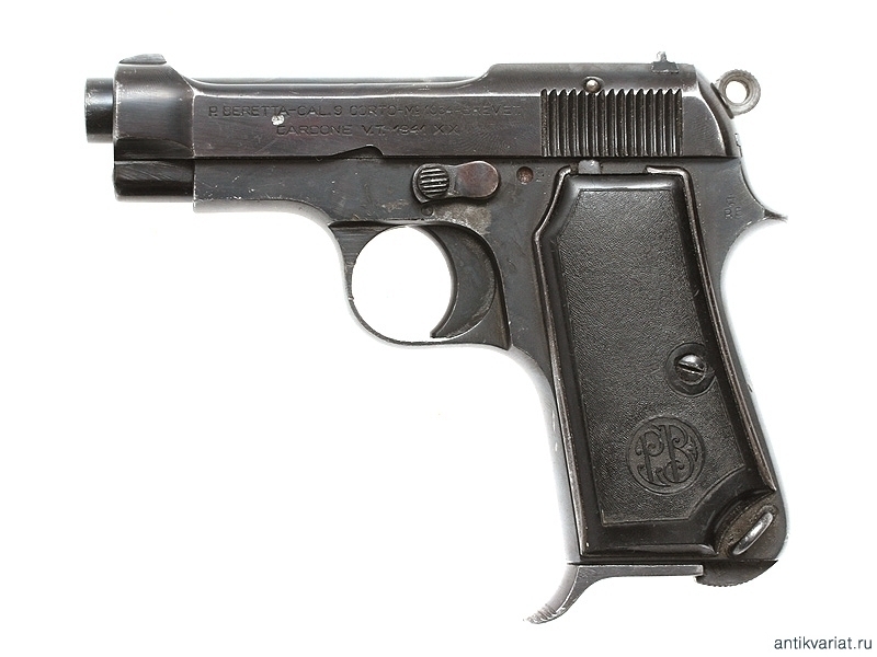 Пистолет системы Беретта образца 1934 года, выпущенный в 1941 году. Компактная модель с характерным выступом на основании обоймы для удобства охвата рукояти рукой. Пистолет изготовлен под традиционный калибр 9 мм.