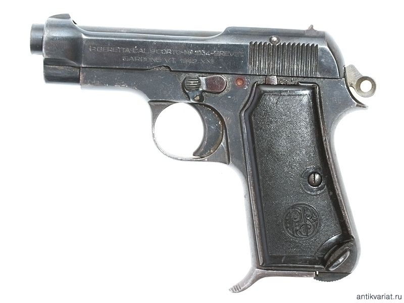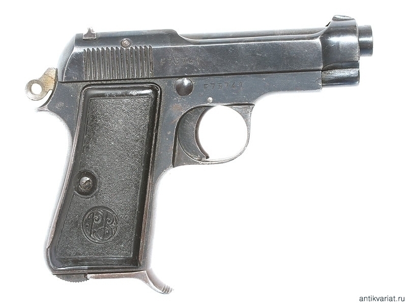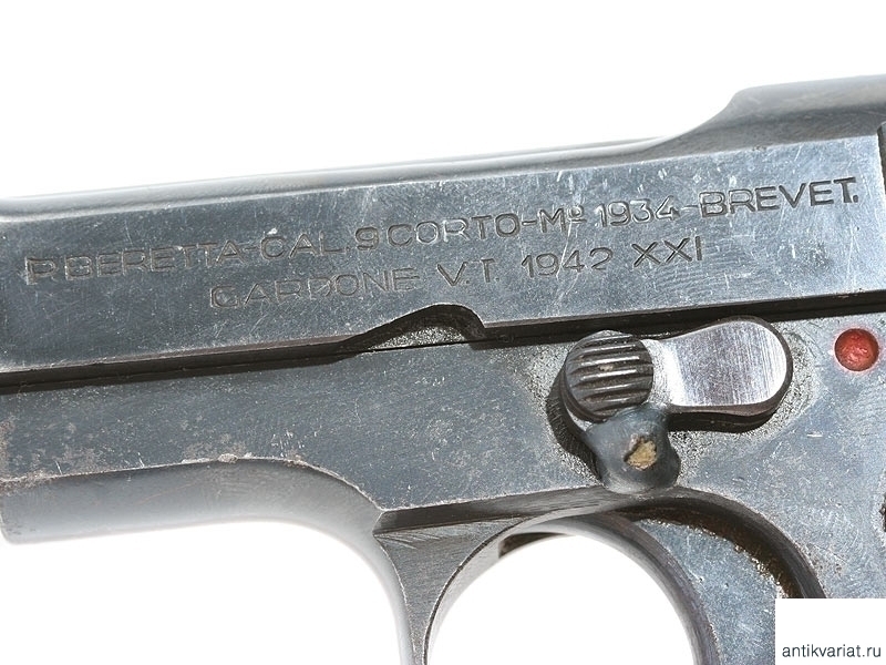 Пистолет системы Беретта образца 1934 года, выпущенный в 1942 году. Компактная модель с характерным выступом на основании обоймы для удобства охвата рукояти рукой. Калибр 9 мм.