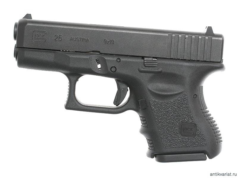Cубкомпактный пистолет семейства Глок - "Глок-26" разработан в 1995 году, в первую очередь предназначен для личного использования. Отличается от базового Глок 17 более короткой и узкой рамой, облегчающей скрытое ношение. Использует боеприпас калибра 9мм. В силу маленьких размеров не очень удобен для стрельбы (что не так важно в случае использования для самообороны). Имеет широкий диапазон магазинов с удлинителями рукоятки, самый большой из которых делает рукоятку и боезапас практически идентичными 17-ой модели.