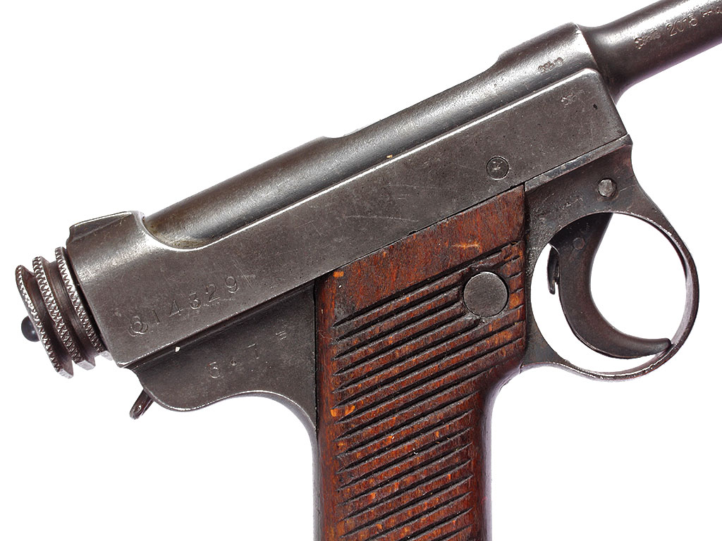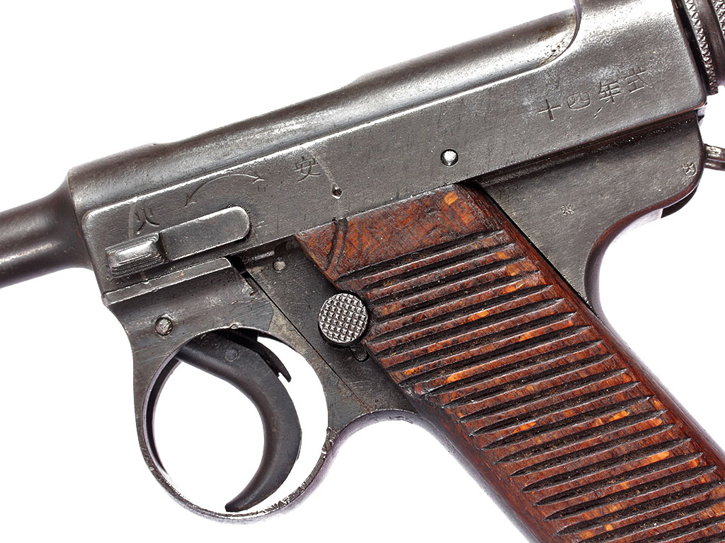 Основной пистолет японских вооруженных сил периода Второй мировой войны - Намбу Тип 14, изготовленный до модернизации 1940 года. Очень хорошее состояние, воронение незначительно потерто.