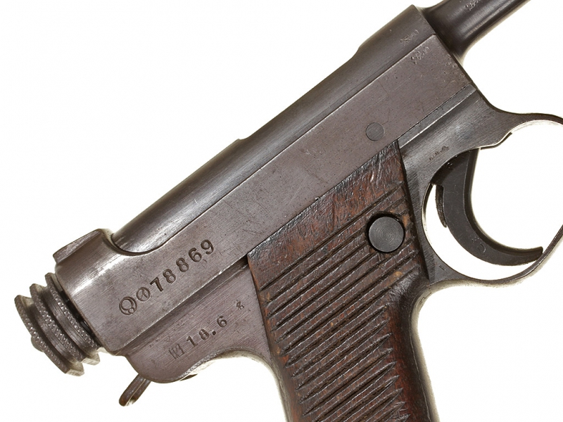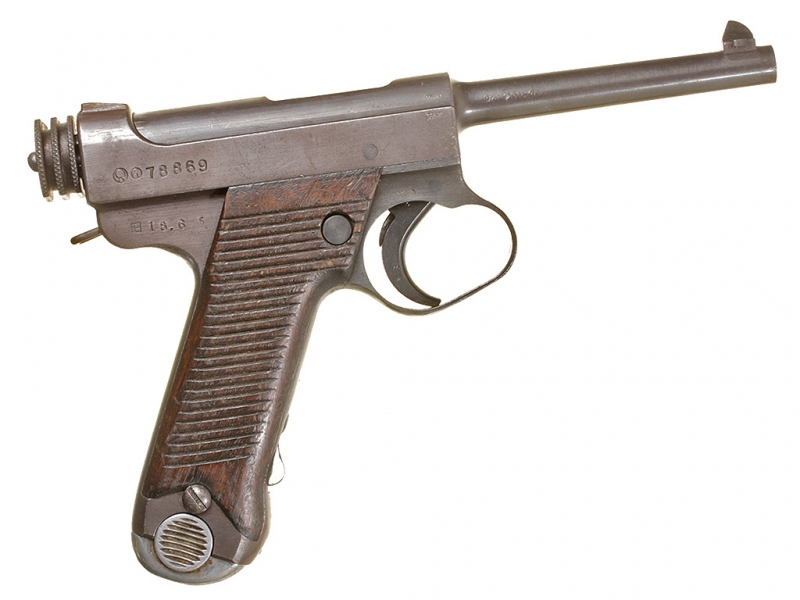 Основной пистолет японских вооруженных сил периода Второй мировой войны - Намбу Тип 14, изготовленный арсеналом Нагоя после модернизации 1940 года. Хорошее состояние, в оригинальном воронении.