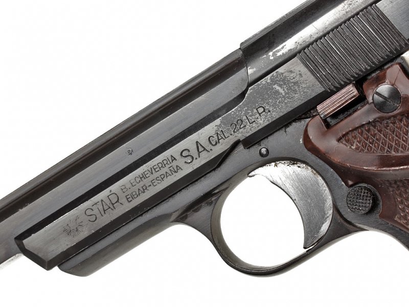 Она представляет собой модель "Ф" с нижней перемычкой, выполненной из твердого металла рамки. Все пистолеты "Стар" серии "Ф" рассчитаны на патрон .22 ЛР и обладают сменными коробчатыми магазинами емкостью десять патронов.