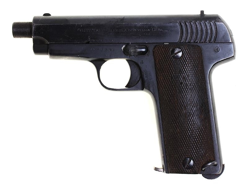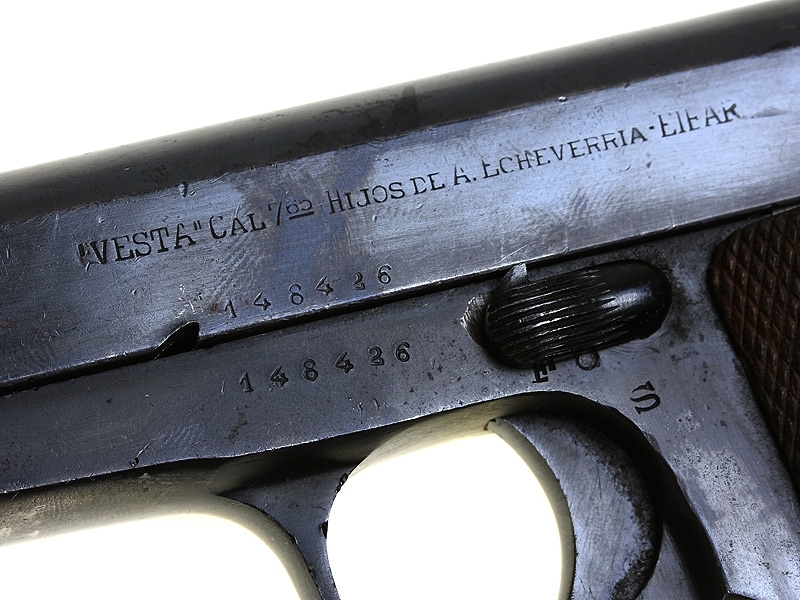 Пистолет Веста калибром 7,65 мм - классический пистолет так называемого "эйбарского" типа. Удлиненный ствол имеет резьбу в дульной части для крепления глушителя. Все детали на одном номере. Оригинальное воронение.