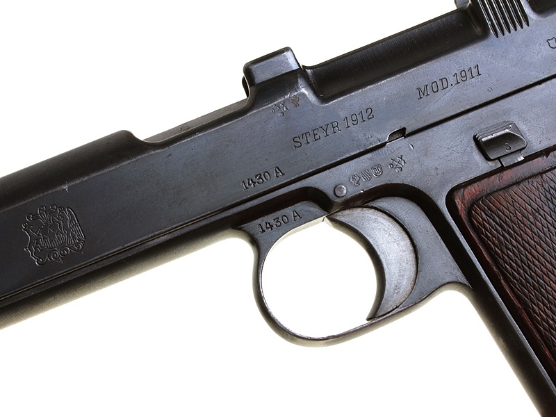 Пистолет Штайр образца 1914 года. Изготовлен по чилийскому военному заказу, на затворе - герб Чили. Калибр 9мм Парабеллум. В отличном состоянии, полностью на одном номере, оригинальное воронение.