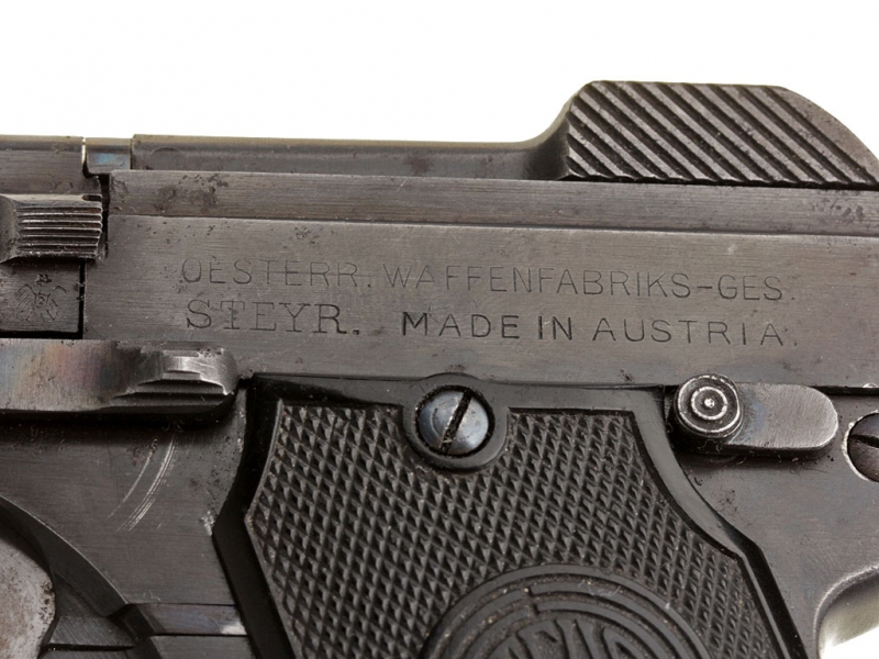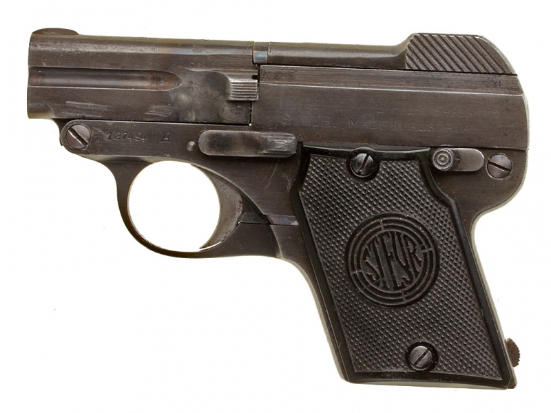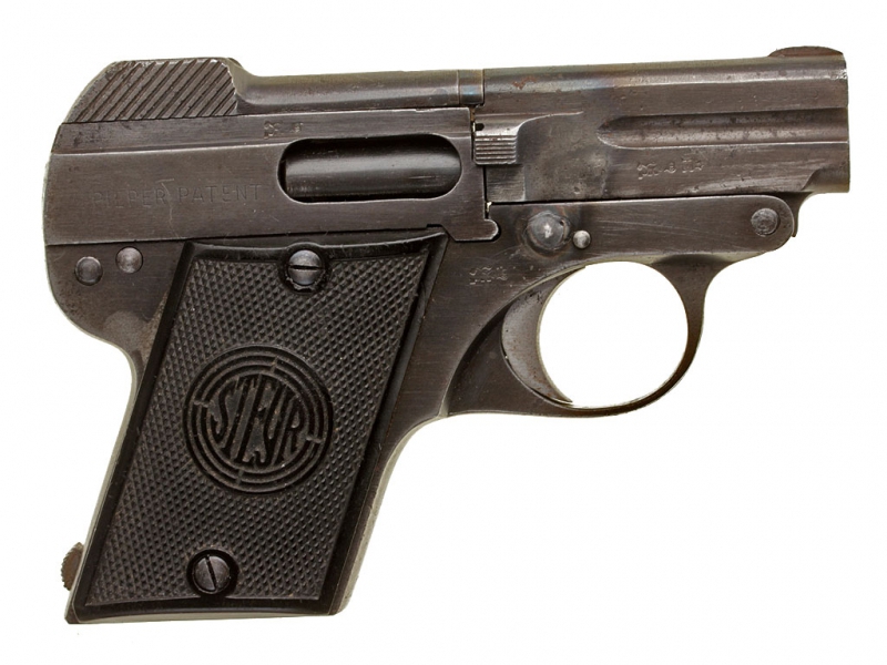 Пистолет Штейр-Пипер образца 1909 года калибром 6,35 мм. Очень хорошее состояние, в оригинальном воронении. Изготовлен после 1921 года.