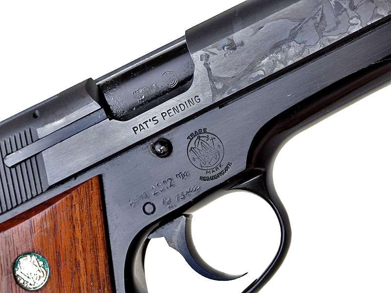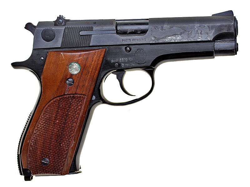 Пистолет Смит и Вессон, модель 39/2 (в отличие от 39/1, данный пистолет изготавливался с алюминиевой рамой и производился с 1971 по 1981 год). Имеются незначительные поверхностные повреждения воронения.