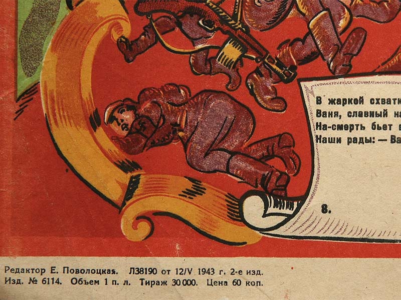 Плакат "Иван - красный боец", художник Т.Маврина, стихи Демьяна Бедного. Государственное издательство "Искусство", 1943 год.