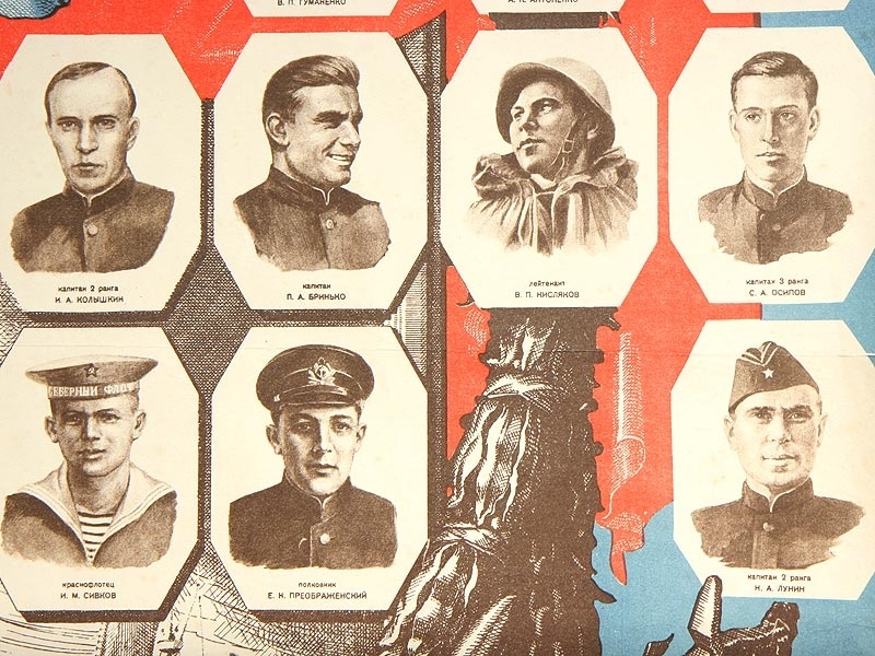 Плакат "Слава Героям Отечественной войны! Моряки - Герои Советского Союза". Ленинград, Государственное издательство "Искусство", 1942 год.