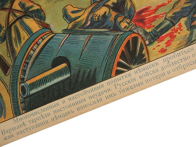Плакат "Война России с немцами. Бой под Ловичем". Периода Первой мировой войны, типография А.В.Крылова в Москве.