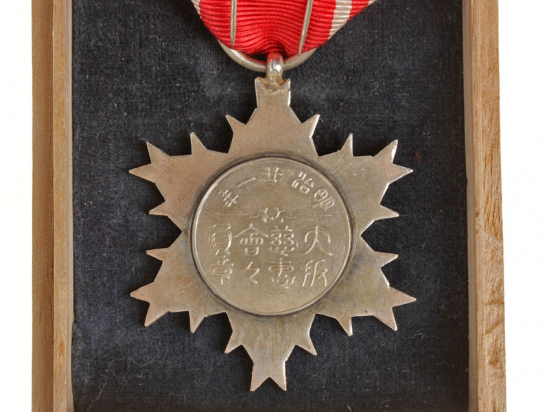 Почетный знак за службу в пожарной охране префектуры Шицуока. Белый металл, в оригинальном футляре.