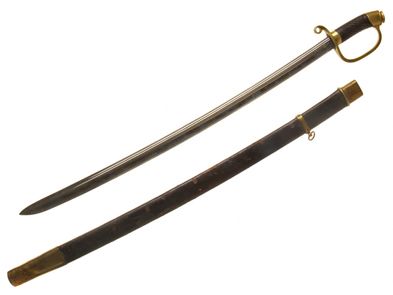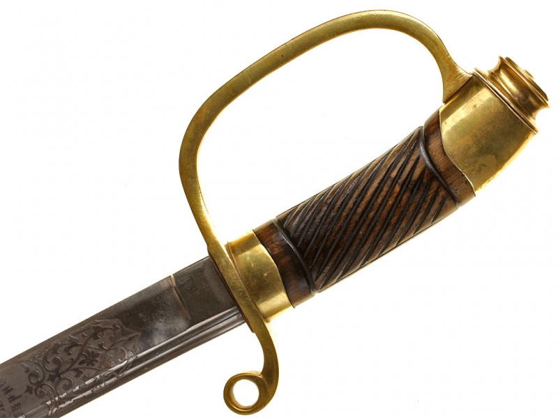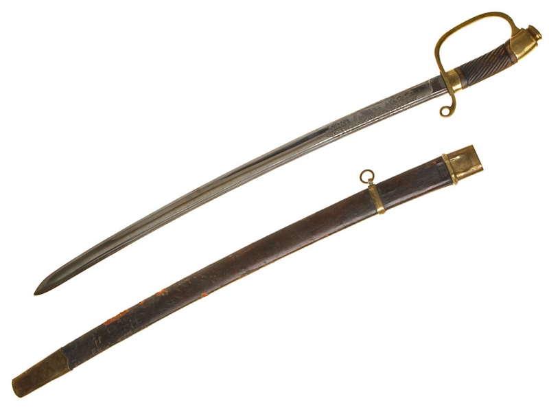 Ножны деревянные, обтянутые черной кожей, с бронзовым золоченым прибором.