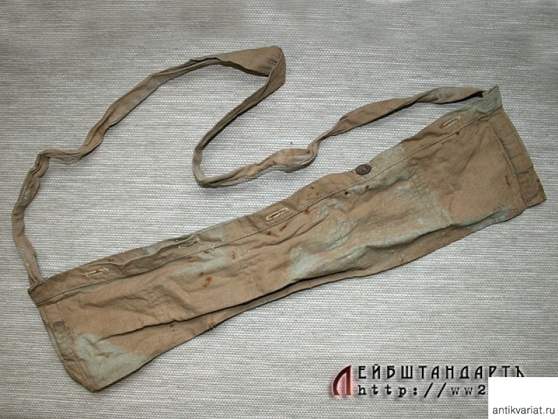 Редкий матерчатый подсумок для винтовочных патронов. Сшит из ткани защитного цвета, пятисекционный, секции застегиваются на пуговицы. Сбоку имеется плохо читаемый чернильный штамп. Одевался через плечо, в годы Первой мировой войны поставлялся союзным войскам, в том числе и в Россию - пользовались им преимущественно в казачьих частях, но иногда им пользовались и пехотинцы. Массового распространения он не получил, так как в полевых условиях плохо предохранял патроны от дождя и сырости.