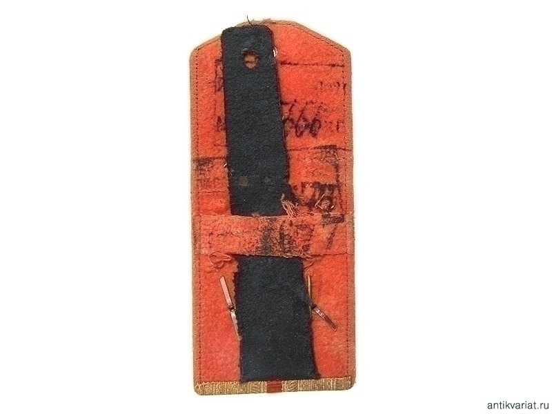Одиночный погон поручика пулеметной роты 22-го пехотного Нижегородского Е.И.В.В.К. Веры Константиновны полка. Звезды накладные посеребренные металлические, поля золотые, кант красного цвета. Оборотная сторона из красного сукна, язычок из черной ткани. Хорошее состояние.