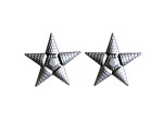 Цвета звездочек и эмблем родов войск серебристые (для командного состава) и золотистые (для начальствующего состава). Звездочки и эмблемы защитного цвета не употребляются. Диаметр звездочек младших офицеров- 13 мм, старших офицеров- 20 мм.
