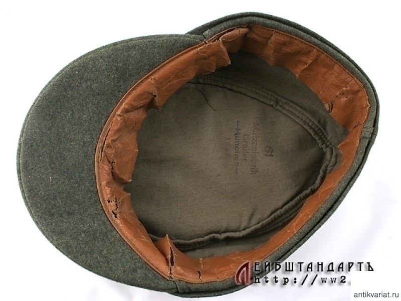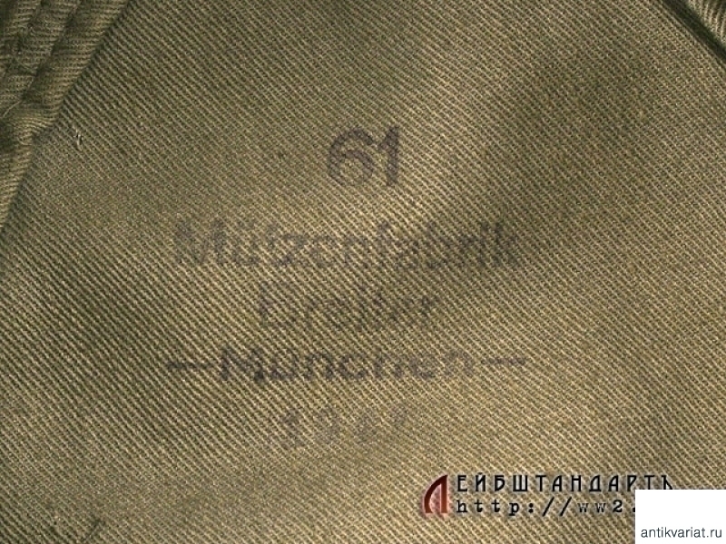 Полевая кепка горноегерских частей в очень хорошей сохранности. Необходимо отметить необычно большой размер 61, обычно немецкие головные уборы маленького размера. Изготовлена фабрикой Брейтера в Мюнхене в 1941 году, о чем свидетельствует чернильный штамп на подкладке. Состояние очень хорошее, присутствует лишь несколько мелких дырочек от моли.
